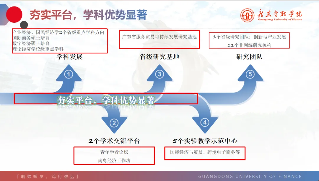 近五年来,学院科研成果丰富,共获各类教学科研项目近200项(其中国家级项目18项),公开出版论文专著教材等200多篇(部),并建有3个省级人文社科重点研究基地,获得商务部商务发展研究成果奖、广东省哲学社会科学优秀成果奖等各类奖项20多项。此外学院教师还主编和参编教材各10部左右,发表教改论文30余篇。