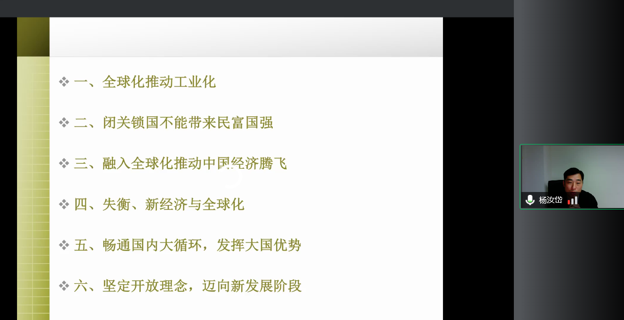 杨教授立足全球经济发展数据与阶段,回顾中国经济发展的历史与现状,通过透析当前全球化形势与机遇,提出中国未来经济发展的方向。杨教授首先指出,建国前30年发展面临的短缺经济主要原因在于“闭关锁国”、城乡分割与计划经济体制等原因,基于此我们要理性思考重工业优先在特定时期的合理性、政府与市场的关系。他强调,中国经济的腾飞有三个重要因素,一是中国在空间上形成了一个由特区(新区)、沿海沿边开放城市、开发区等组成的多维度、立体的开放体系,二是充分发挥了国际贸易在促进技术扩散、提高资源配置效率方面的作用,三是FDI在促进内部改革、提升本土制造和研发能力等方面发挥了作用。中国经济取得了巨大成就,但也面临传统比较优势模式下全球失衡与变局等的问题:全球化带来的经济增长遇到天花板,通过全球资源再配置产生的红利逐步消退,做大蛋糕的效应也在下降,更重要的是,这一轮全球化带了“苦乐不均”的问题。未来影响全球生产与贸易格局的关键因素仍然是两个:基于分工的规模经济与贸易成本。中国应坚定开放理念,推进国内超大的要素和产品市场一体化,形成开放新优势,迈向新发展阶段。