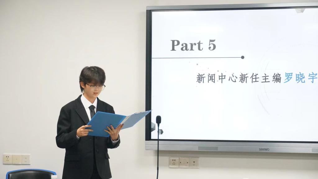 新闻中心指导老师曾晓思发表关于新闻工作的指导意见和祝愿,新闻工作是高校宣传工作的重要组成部分。通过新闻报道,我们可以及时了解学校的最新动态、教学成果和科研成果等,同时也可以展现学校的形象和特色。新闻工作是高校传播文化的重要手段。通过新闻报道,我们可以传递学校的文化理念、价值观和精神风貌,让更多的人了解和认同我们的文化。新闻工作是高校学生素质培养的重要途径。通过参与新闻工作,学生可以提高自己的写作能力、采访能力和组织能力,同时也可以增强自己的责任感和使命感。最后,我希望我们新闻中心的同学们能够在今后的工作中,发扬团结协作、积极向上的精神,提高自己的专业水平和工作质量,为学院和学校的发展和建设做出更大的贡献。晓思老师勉励新上任的学生干部做好宣传工作,传承优秀文化,好好锻炼能力。要走出去看世界,要真正做出高水平的作品,做到无愧自己,也不负学院。