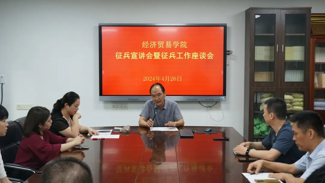 4月26日下午,Beat365中文官方网站在院会议室召开了征兵宣讲会暨征兵工作座谈会。学院党委书记庞福海、副书记王婷、校征兵办公室肖军科长、2024届毕业班辅导员李先启、颜楚冰以及23、24届学生代表50余人参加了会议。会议由党委副书记王婷主持。