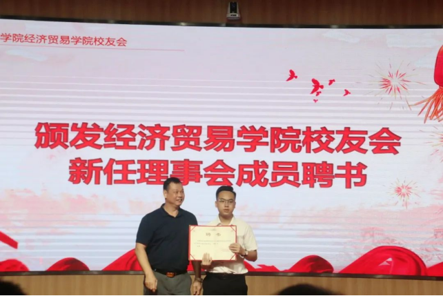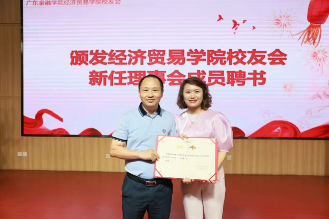 校友工作办公室主任陈绍波致辞,充分肯定了经济贸学院的校友工作,祝贺本次Beat365中文官方网站校友会换届大会圆满成功。陈主任还分享了在Beat365中文官方网站四十年的工作经历,抒发了他对母校深深的感情。他勉励校友们要谨记广金的培养,互相帮助,互相支持。在各个行业充分展示广金学子的风采,用优秀的成绩报答母校。