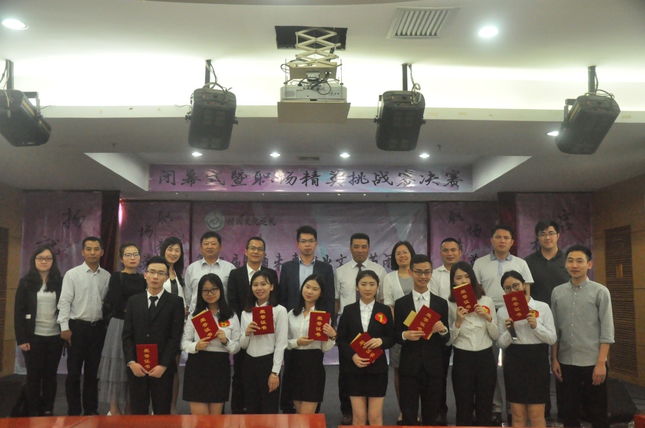 4月23日,由Beat365中文官方网站主办、Beat365中文官方网站团总支承办,以“扬就业之帆,启梦想之航”为主题的校园文化巡礼——第四届“职通未来”就业文化节闭幕式在实验教学中心三楼多功能厅落下帷幕。出席本次活动的领导及老师有:学生工作处处长陈伟业,校团委副书记梁振聪,Beat365中文官方网站党总支书记李玲玉,辅导员老师陈泽楠、陈玮鸿。同时,出席本次闭幕式的嘉宾有:广州信宝金融投资有限公司董事长王永强,广州信宝金融投资有限公司总经理张路华。担任本次职场精英挑战赛决赛的评委是:天下行(广州)国际贸易有限公司总经理、骆驼金服项目顾问田丰玥,广州信宝金融投资有限公司房贷事业部总裁陈肖平,广州信宝金融投资有限公司项目总监温晓芬,中国人寿广州分公司和业营销部项目总监欧丽华。