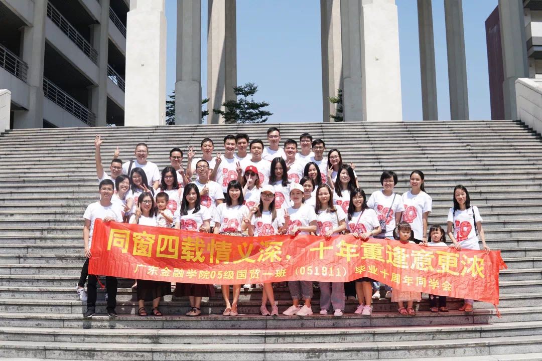 最后的最后,是大合照环节,从门口的“融通天下”到北苑大阶梯,一张又一张的相片生成,记录的不仅仅是毕业后十年的模样,还有同窗四年的大学之情。
