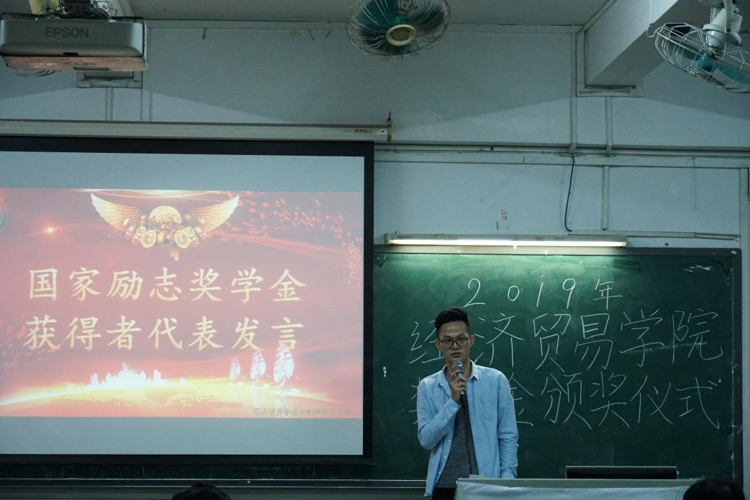 颁奖结束后,16级的国家励志奖学金学生代表黄森宜同学上台发表获奖感言,分享了他一路以来的心路历程,为我们的前路提供指引。