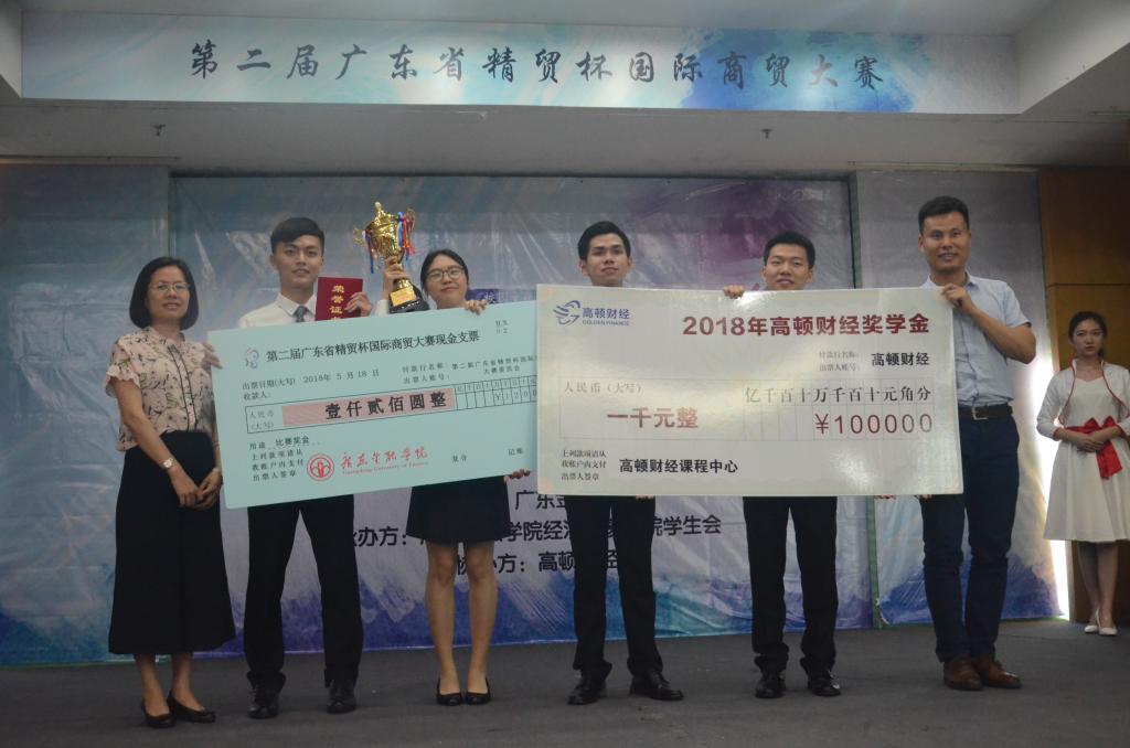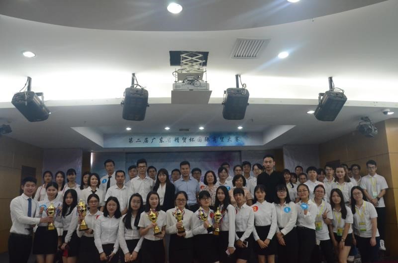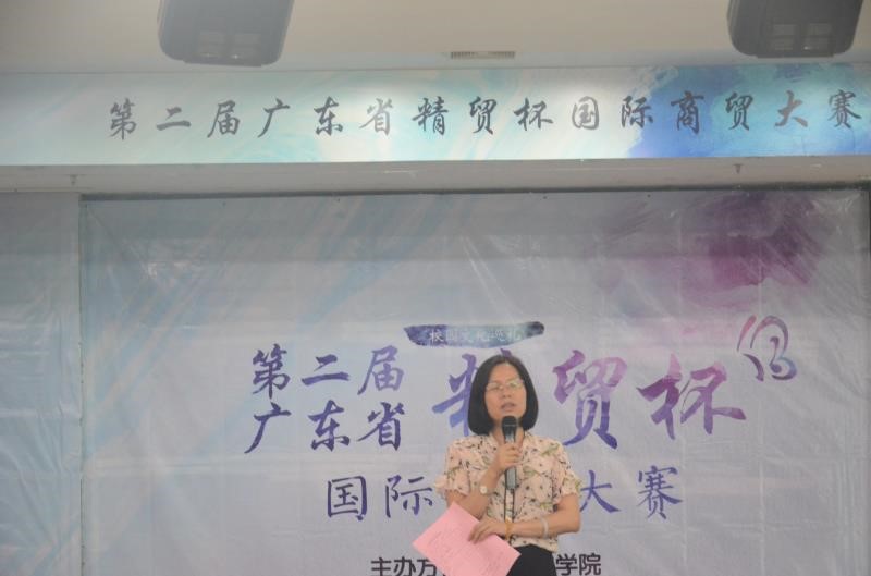 2018年5月18日晚上7:00,第二届广东省“精贸杯”国际商贸大赛决赛暨闭幕式于电教三楼多功能厅举行。出席本次决赛暨闭幕式的领导和嘉宾有学生处容志豪副处长,经贸院李玲玉书记,经贸院钟兰副书记,曾晓思老师,陈泽楠老师,陈玮鸿老师,林慧琳老师。担任本次比赛的评委有高顿财经华南区高级经理Book Wu,高顿财经区域市场经理林穗青女士,天下行(广州)国际贸易有限公司田丰玥总经理,柯睿欧制冷设备有限公司袁雅婷总经理。此次比赛共有六支队伍脱颖而出,挺进决赛,他们在舞台上发挥所长,尽情展示。在此次决赛中,杨晓嘉、黄楚恭、潘伟琳选手以他们谨慎且全面的思辨能力获得了“最佳谈判手”的称号,而队伍“周伍双黄旦”,在比赛中表现出的队员间的默契配合和缜密的谈判技巧令其脱颖而出,一举拿下了一等奖。