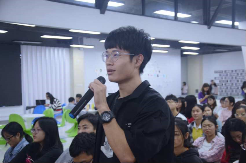 紧接着黄瑾女士向大家分享了洋葱集团的一种创业精神,她表示年轻人要多去尝试新鲜事物和寻找更大的平台去磨练自己,坚持专注于自己所感兴趣的和所热爱的,学会投资自己的大脑、掌握学习技能、提高情商、积极融入社交圈,打造社交人脉是创业的条件。陈泽楷师兄和谢政东师兄也向大家分享了在洋葱集团实习的一些经历,并表示我们应该了解自己想要什么,多去尝试,未来会有很大的发展空间。