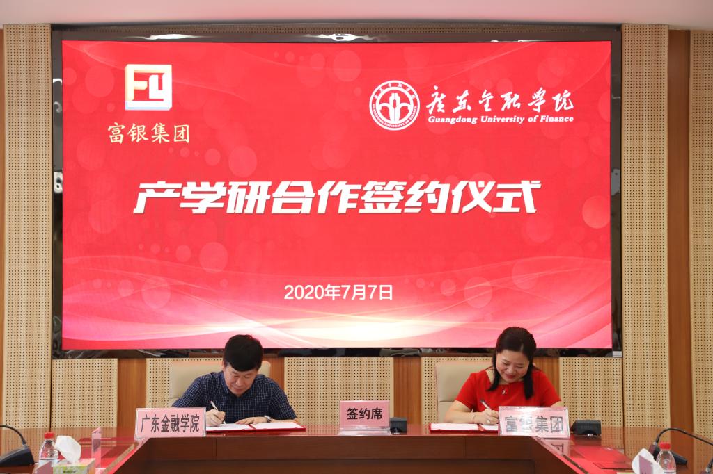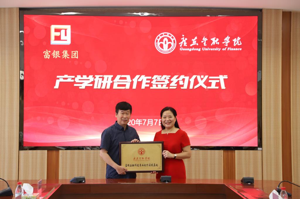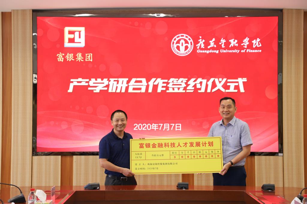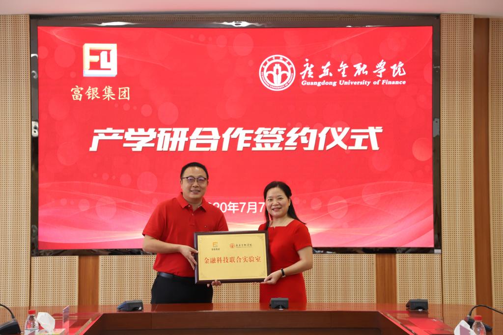 杨群英、王醒男分别代表双方签署了《珠海富银控股集团有限公司 Beat365中文官方网站产学研合作协议》,并举行了隆重的“广金-富银金融科技联合实验室”、“广金-富银金融科技专业校外实践基地”授牌仪式和“富银金融科技人才发展计划”捐赠仪式。仪式结束后,郭宇生一行参观了广东省普通高校工程技术重点研究平台——广东金融科技工程技术开发中心。