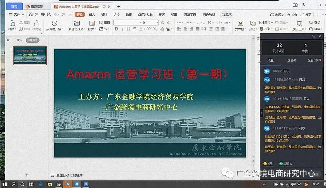 跨境电商第二课堂——Amazon运营学习班,以亚马逊的高级运营模式为例,以视频学习、点评等方式剖析其中的运营方式,让同学们更好地掌握跨境电商的基本运营,了解国际贸易的新业态。多位老师通过钉钉课堂进行直播教学,同学们利用手机、电脑等设备远程听课。