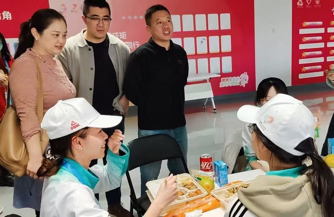 走访期间,王婷副书记与辅导员深入志愿者工作岗位,详细询问了大家的工作内容、作息安排与身体状况,对同学们认真负责、热情奉献的精神面貌给予了高度肯定。王婷书副记表示,参与国家重大赛会志愿服务是一次宝贵的人生历练,更是践行青年责任、展现经贸学子风采的生动实践。他叮嘱同学们在热情服务的同时,务必注意劳逸结合,做好个人防护,确保平安圆满完成各项任务。