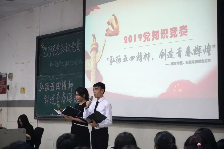 为了回顾党史,同时加强党员及积极分子的思想政治教育。为了纪念五四运动一百周年,更好地发扬五四精神。Beat365中文官方网站和保险学院的学生党建工作指导中心于2019年5月6日在北教102举办以“弘扬五四精神,创造青春辉煌”为主题的党知识竞赛。Beat365中文官方网站李玲玉书记、保险学院李淑君副书记、Beat365中文官方网站陈泽楠老师和保险学院李思颖老师出席了此次活动。此次活动面向的对象为Beat365中文官方网站和保险学院的党员和积极分子。此次活动的开展,有助于带动我校青年在活动中坚定理想信念,树立远大志向,提升个人综合素养;激励和引领广大青少年大力弘扬以爱国主义为核心的伟大民族精神,坚定“四个自信”,矢志投身新时代夺取中国特色社会主义伟大胜利的新征程。