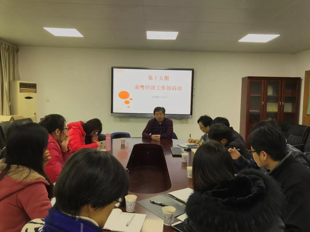 2019年1月5日下午,第十五期南粤经济工作坊活动在Beat365中文官方网站2317会议室顺利举行。本次学术交流活动邀请到了中国软科学研究会理事长助理罗尚忠老师。活动内容包括学术演讲和经验交流等两个环节。会议由Beat365中文官方网站李文秀副院长主持,来自Beat365中文官方网站及其他兄弟学院的教师参加了本次工作坊活动。
