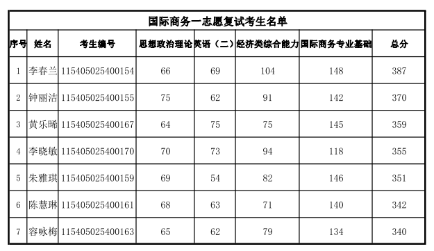 根据教育部发布的《2025年全国硕士研究生招生考试考生进入复试的初试成绩基本要求》,结合我校实际情况,经学校研究决定,现公布我校2025年国际商务硕士研究生招生复试名单。